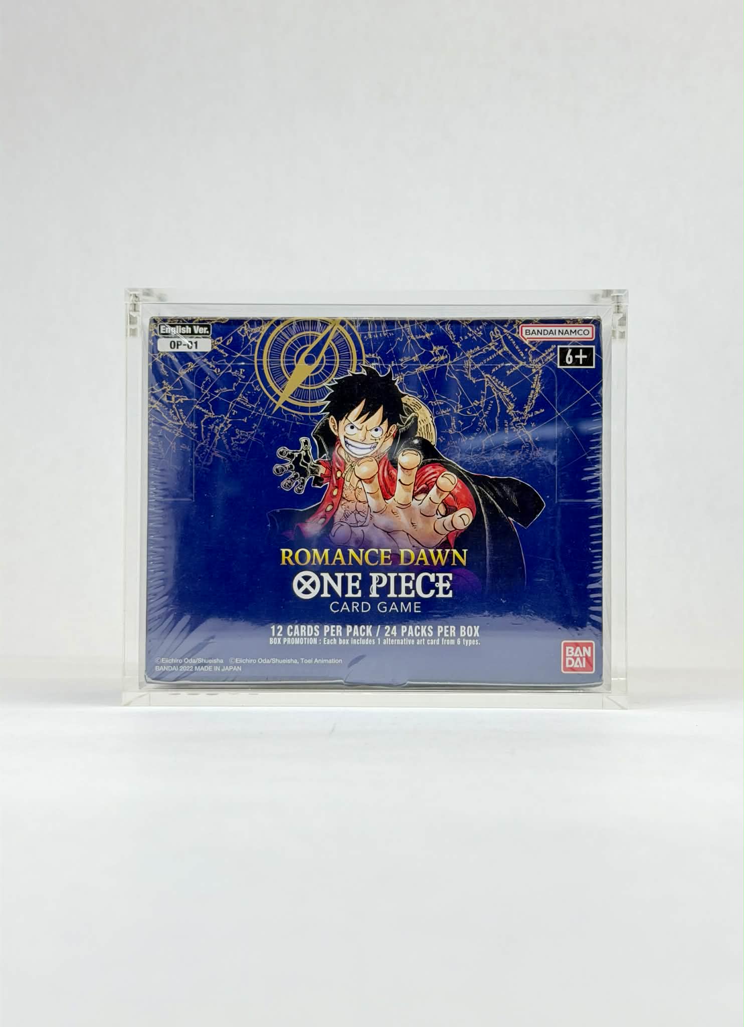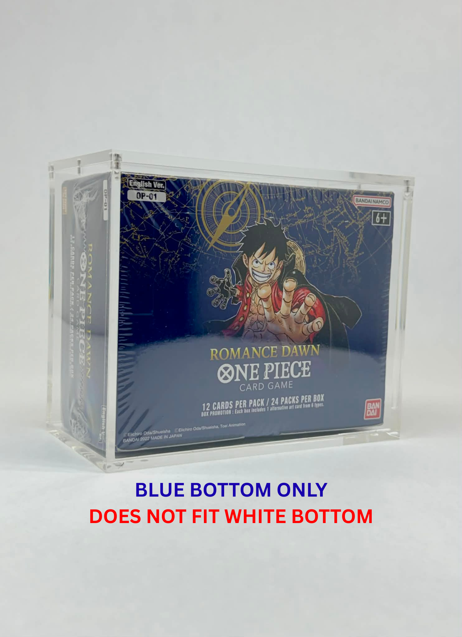 One Piece OP01 Blue Bottom Booster Box Acrylic Display Case UV Protection Magnetic Lid