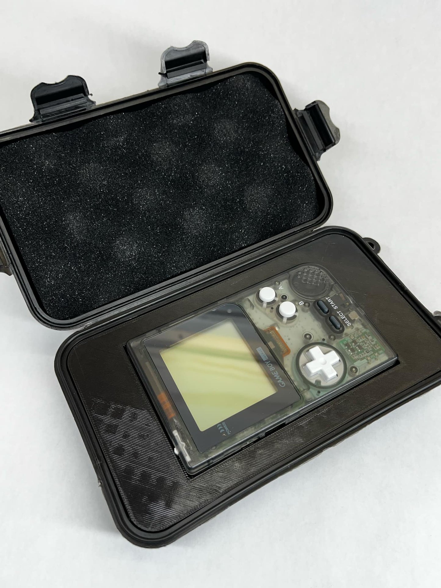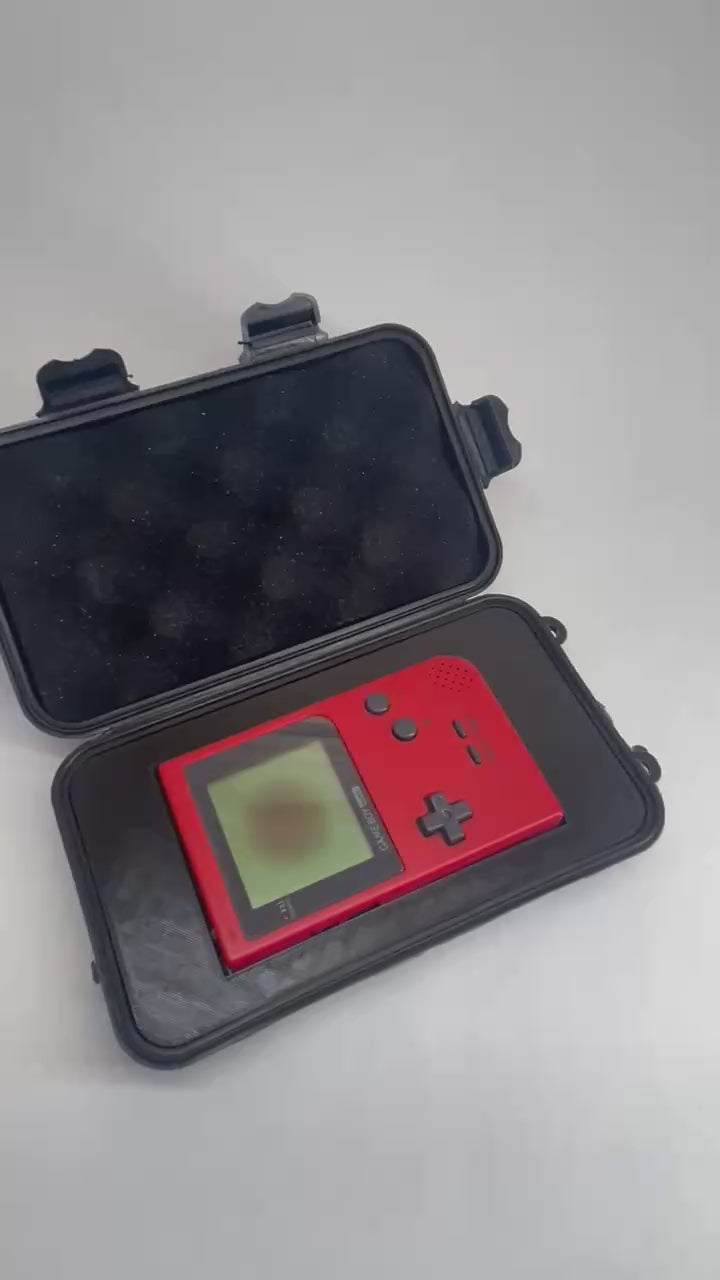 Description: Take your Game Boy Pocket on the go with confidence using this custom-fit carrying case by SENAC LLC. Designed for retro gamers, it holds up to 3 Game Boy games—2 in the tray, and 1 inside your console—in a snug, shock-absorbing shell.